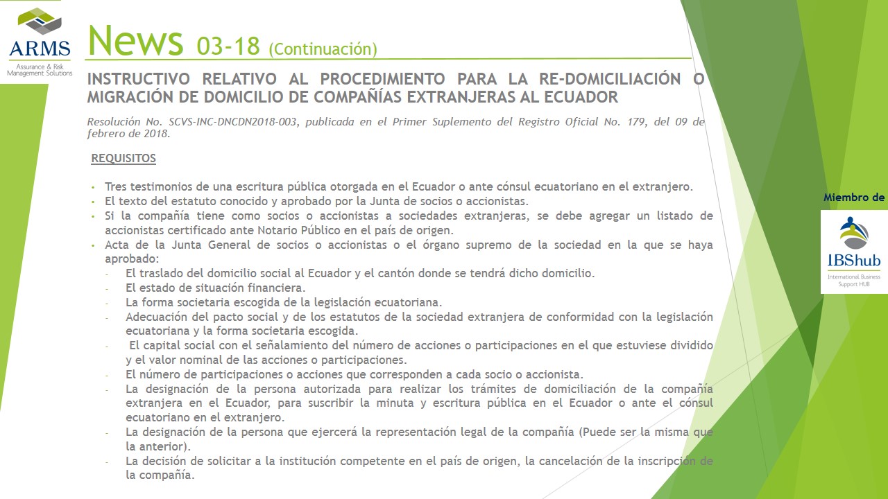 INSTRUCTIVO RELATIVO AL PROCEDIMIENTO PARA LA RE-DOMICILIACIÓN O MIGRACIÓN DE DOMICILIO DE COMPAÑÍAS EXTRANJERAS AL ECUADOR 2/3