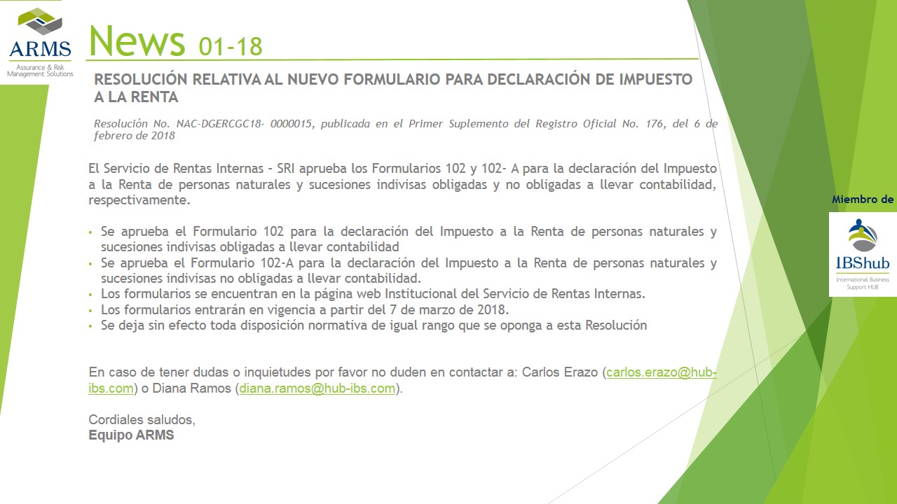 RESOLUCIÓN RELATIVA AL NUEVO FORMULARIO PARA DECLARACIÓN DE IMPUESTO A LA RENTA
